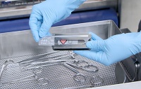 The Getinge Assured Ultrasonic Wash Monitor checks the cleaning efficiency in the ultrasonic cleaner. The test is inserted in a re-usable Wash Monitor Holder and then placed in the ultrasonic cleaner. Consistent with ISO 15883, routine monitoring of washer-disinfectors