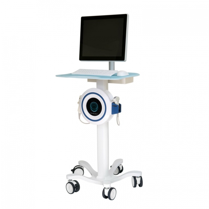 This innovative technology helps to facilitate safe, more accurate diagnosis and treatment of osteoporosis a primary care procedure. Data analysis includes the calculation of the Osteoporosis Score and Fragility Score, based on the correlation between frequency spectra of acquired RF signals and the appropriate reference models of “osteoporotic” and “frail” bones, respectively. BMD, Tscore and Z-score are then derived from the O.S. value.