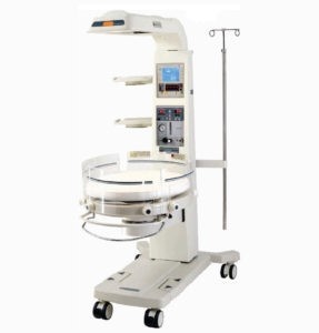 Infrared radiation produced by a quartz heating element is spread uniformly by a parabolic reflector all over the baby. The heater unit can be swiveled to accommodate mobile X-ray equipment so that transporting the baby is avoided. - World’s First Oval Shaped Bed
