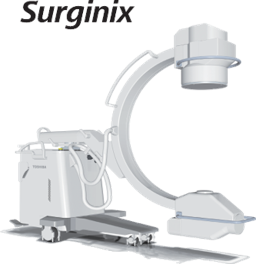 Toshiba Surginix (SXT 2000A) is designed to improve the workflow in surgical suites without compromising image quality, image acquisition techniques, or dose management. An ergonomically friendly touch panel control, widescreen medical monitors, and laser guide for easy positioning and easy viewing during clinical procedures. It is optimized for fluoroscopy and direct radiography in surgical suites.